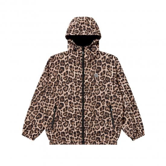 Hooded track jacket featuring an original leopard print on ripstop fabric. Available as a set with matching track pants.