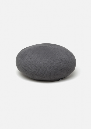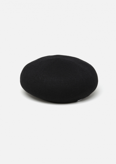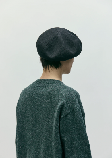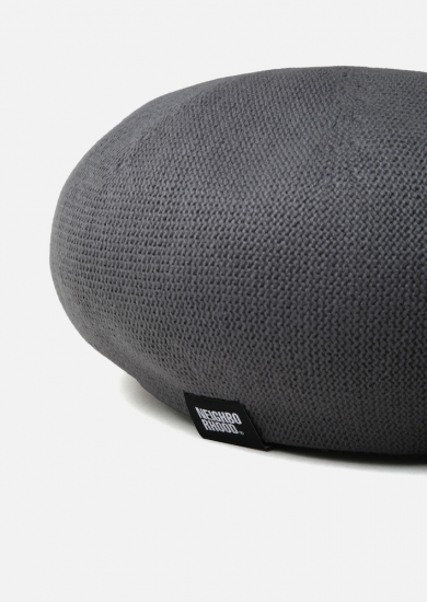 アクリルニット素材を使用したニットベレー。左サイドにネームタグを配置。