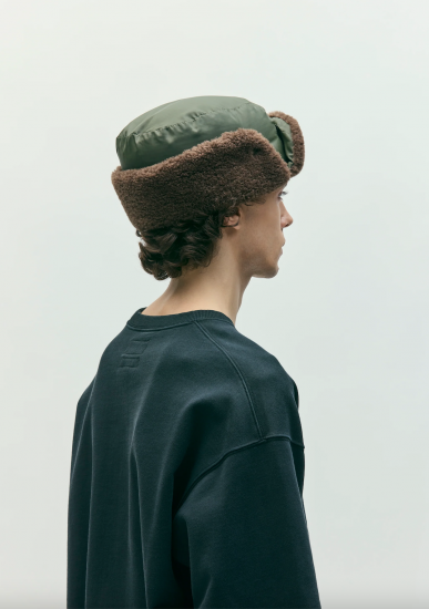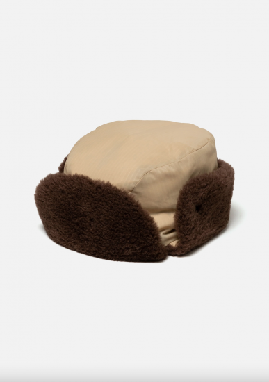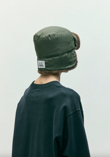 ハリとコシがあり、鈍い光沢を持つナイロンリップストップ生地を使用したダウンキャップ。両サイドに設置したスナップボタンにより耳あてを留めておくことが可能。背面にコラボレーションネームを配置。1920年創業のアメリカ・シアトル発アウトドアブランドEddie Bauerとのジョイントワークアイテム。
