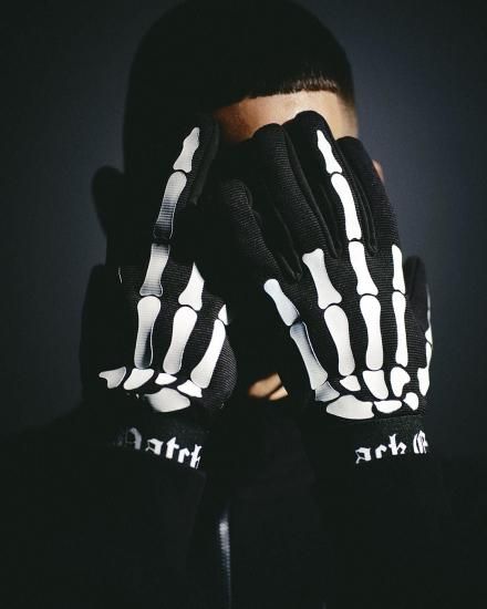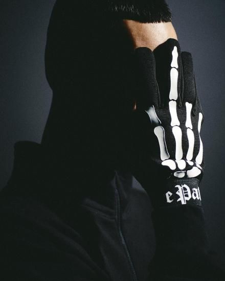 Original gloves featuring a skeleton hand print. Logo print on the wrist.